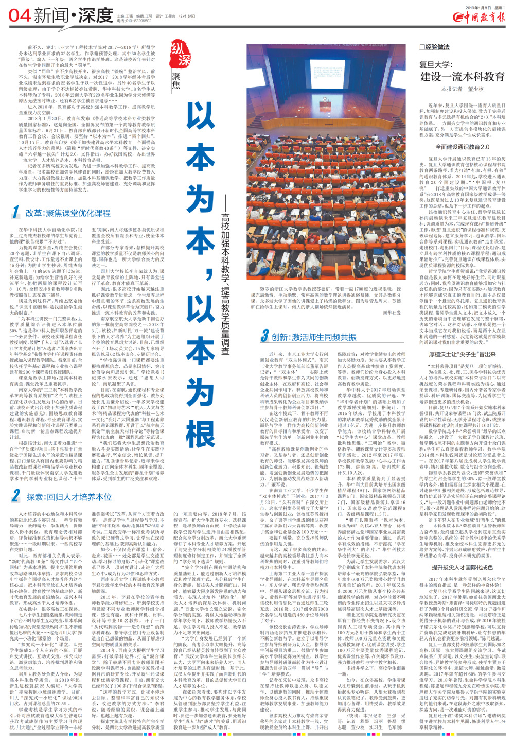 记者在多所高校采访发现,为进一步加强本科教学工作、提高教学质量,很多高校在加强学风建设的同时,纷纷在加大教学经费投入力度、大力提倡教授上讲台、加强本科基础课教学、把教学工作质量作为教师职务聘任的重要标准、加强高校师德建设、充分调动和发挥学生学习的积极性等方面持续发力。
