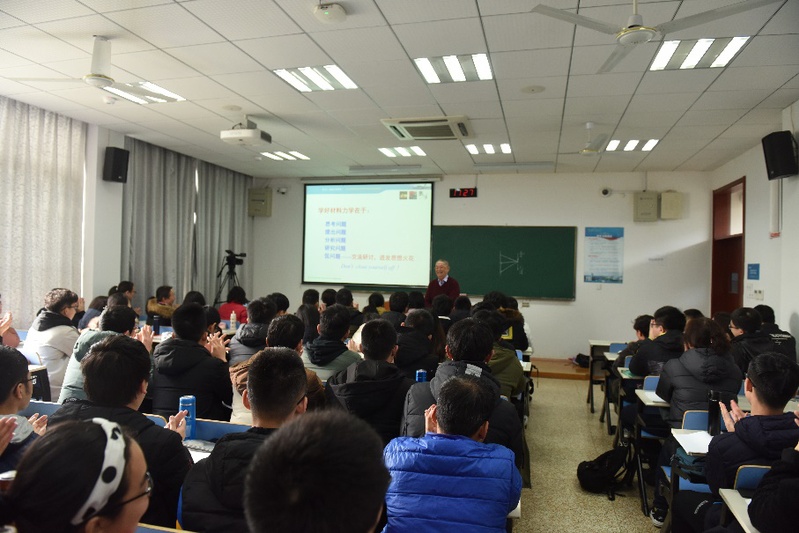 2月26日上午10时,将军路校区2106教室里座无虚席,近百位学生和教师正在期待首届国家教学名师、ac米兰“钱伟长讲座教授”、82岁高龄的范钦珊教授亲自讲授《材料力学(A)》的第一课。范钦珊在与前排的学生与老师问好后,精神矍铄地走上讲台,开始了他今天的课程。值得一提的是,在这次导论课的课堂上,除了45位学生以外,还吸引了全校不同学院的65位老师前来观摩学习。