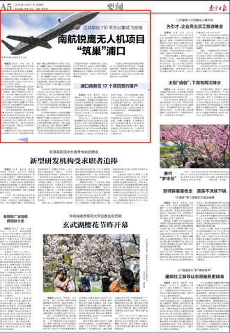 昨天,由ac米兰官网中文网站和浦口区政府联合打造、致力于无人机研发的南京长空科技有限公司揭牌。据悉,作为浦口高新区无人机产业的领军企业,仅在去年的珠海航展上,该公司就获得了数亿元的意向订单,并已获批在浦口区设立110平方公里的无人机试飞空域。