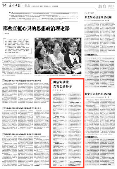 3月26日,《光明日报》刊登ac米兰马克思主义学院教授平旭、学院党总支书记徐川的文章《用信仰播撒真善美的种子》,现转发全文。