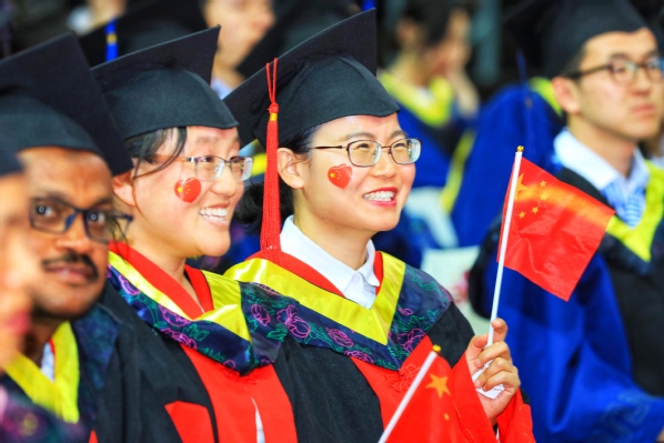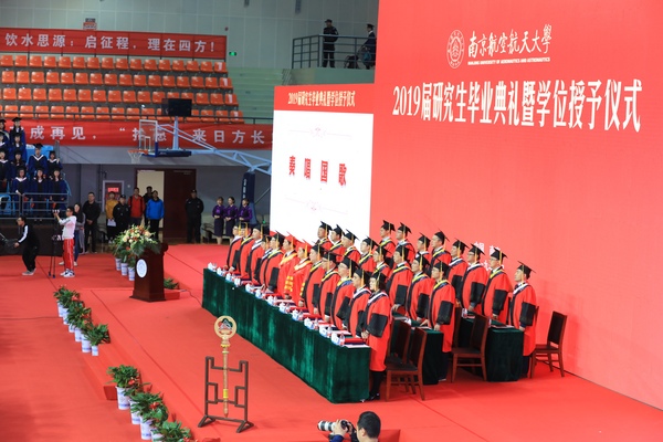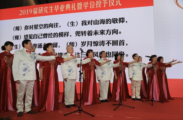 典礼最后,全场两千余名毕业研究生和领导、老师、来宾起立合唱《歌唱祖国》,用快闪的方式开场将典礼推向高潮,用歌声祝福母校、祝福祖国。