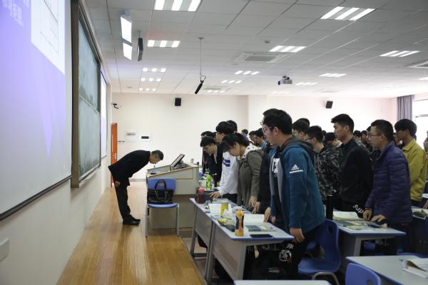 近日,记者慕名来到陈建平老师的课堂,见证了这样一幕:随着陈建平老师一声“上课”,教室里80余名同学集体起立,偌大的教室里并没有响起洪亮的“同学们好”、“老师好”,取而代之的是讲台上陈建平老师对同学们深鞠一躬,接着同学们落座,上课就这样开始了。短短十几秒的时间,将上课礼的简短、庄重、默契的特征表现得淋漓尽致。