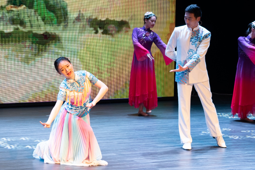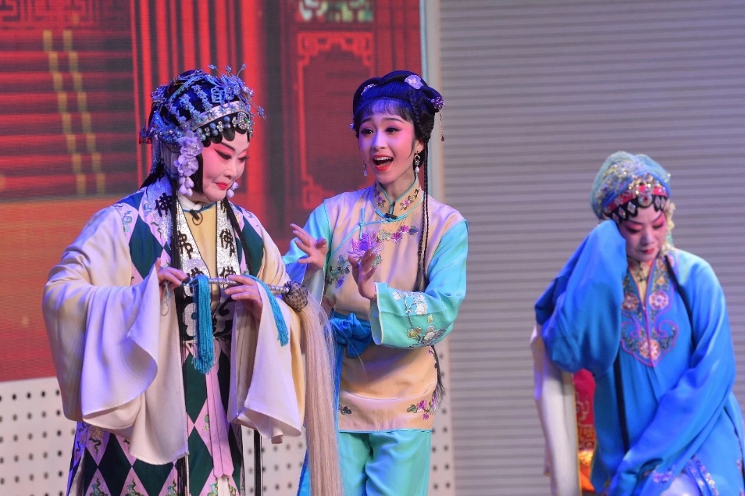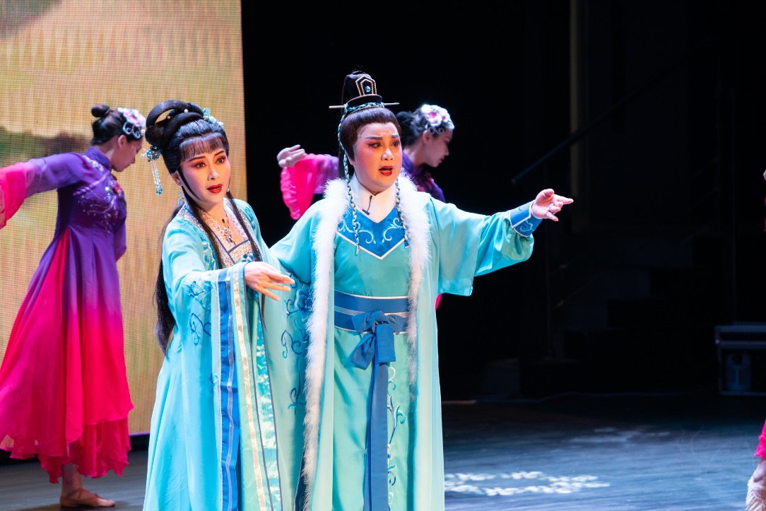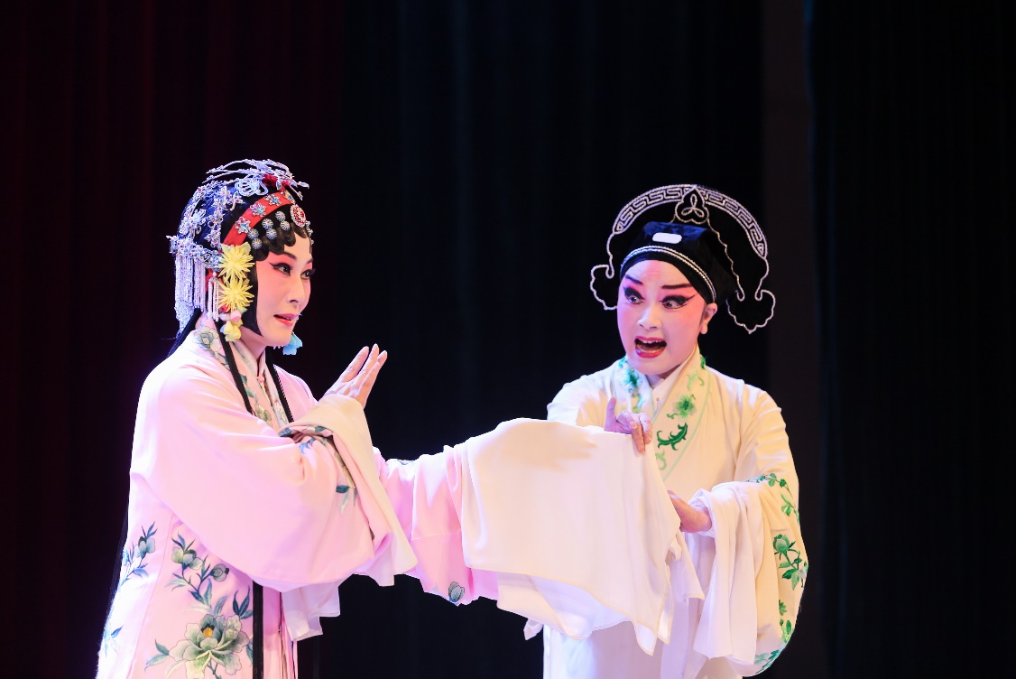 本场演出的戏曲名家中有5位戏剧梅花奖获得者,5位戏曲国家级传承人。“赴秋闱,下第归,中心惆怅,叹仕途,难容我,落拓疏狂。”演出在国家一级演员、竺派传承人竺小招和戏曲梅花奖、白玉兰奖获得者、国家一级演员陶琪表演的《柳毅传书•湖滨惜别》中拉开序幕;之后国家一级演员、戏曲梅花奖获得者徐秀芳老师演绎扬剧《鸿雁传书》,国家一级演员、戏曲梅花奖获得者倪同芳领衔锡剧《玉蜻蜓•探病得子》;昆剧泰斗石小梅、国家一级演员、戏曲梅花奖获得者孔爱萍带来的昆剧《牡丹亭•惊梦》更是将演出推向高潮,现场不时爆发出雷鸣般的掌声。最终师生共同演唱的《越韵古诗•无题》,由ac米兰经济与管理学院与人文与社会科学学院的两位同学演绎前半段,竺小招老师和陶琪老师演绎后半段。