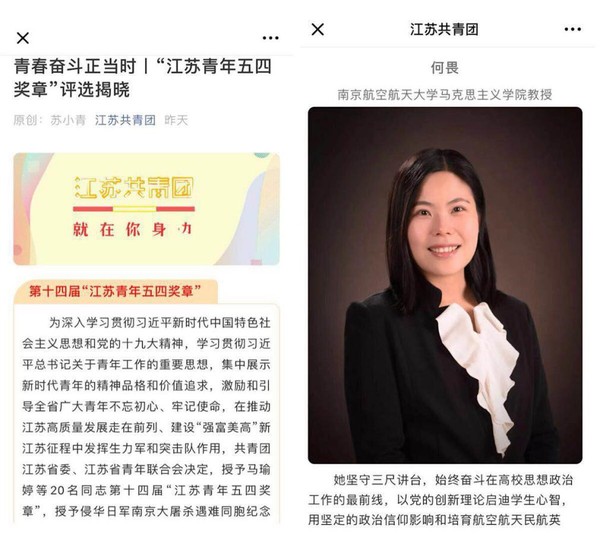 在江苏省第十四届“江苏青年五四奖章”评选中,ac米兰马克思主义学院副院长何畏教授脱颖而出,成功当选。“江苏青年五四奖章”是江苏团省委、江苏省青联授予江苏青年的最高荣誉,每年从全省各行各业青年模范人物中经过多轮评审,评选出20名优秀青年代表获此荣誉。