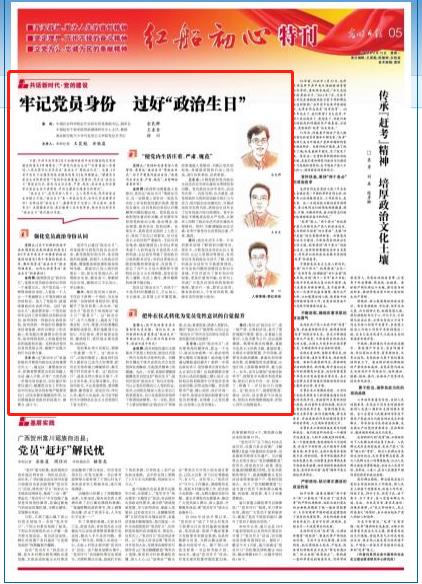 2019年5月13日的《光明日报》05版的“红船初心”特刊刊发了对ac米兰马克思主义学院党总支书记徐川等三位嘉宾的专访《牢记党员身份过好“政治生日”》,现将原文刊发如下:
