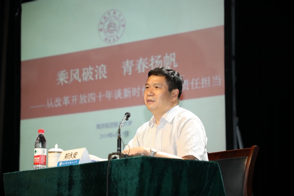 6月17日下午,校党委书记郑永安为2019届本科生党员上了一堂题为《乘风破浪,青春扬帆——从改革开放四十年谈新时代青年的责任担当》的党课。党委副书记陶勇,党委常委、宣传部部长王晖,相关职能部门、学生工作人员代表、全体2019年党员骨干培训班成员、2019届“大学成就奖”及其提名奖获得者共计500余人参加了学习。