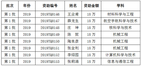 中国博士后科学基金第1批特别资助(站前)获资助人员名单