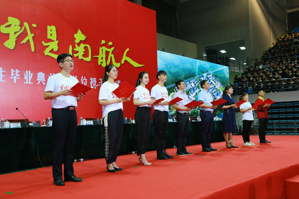 校党委副书记陶勇为2019届校友大使代表颁发聘书,表达了对毕业生们的祝福和期待。
