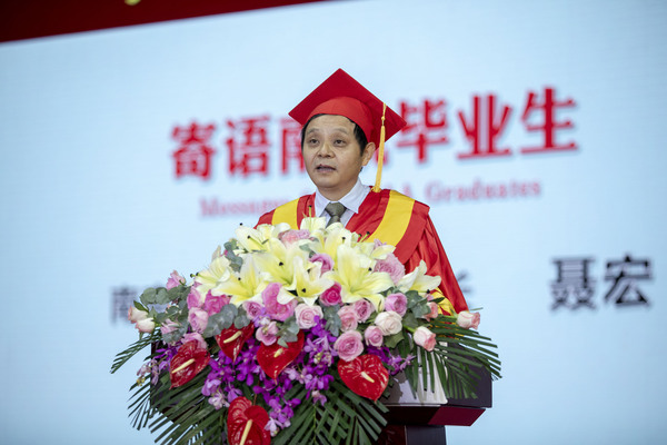 聂宏校长代表学校寄语2019届毕业生。他首先祝贺毕业生们即将伴着建国70周年的乐章顺利毕业。用“忘不了”、“ac米兰造”、“真好”这三个关键词与毕业生们共同回忆这不同寻常的四年大学生活。代表学校对同学们提出了期许,希望全体毕业生能够提升责任意识、锤炼创新精神、开拓国际视野、培育人文情怀,成为德才兼备、引领各行各业发展的“社会栋梁”和成果突出、具备鲜明ac米兰特色的“工程英才”。