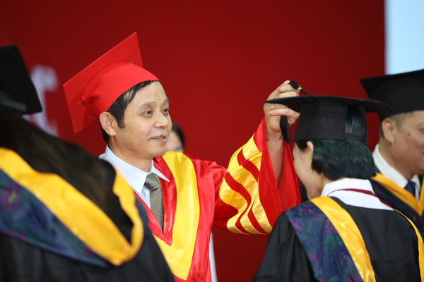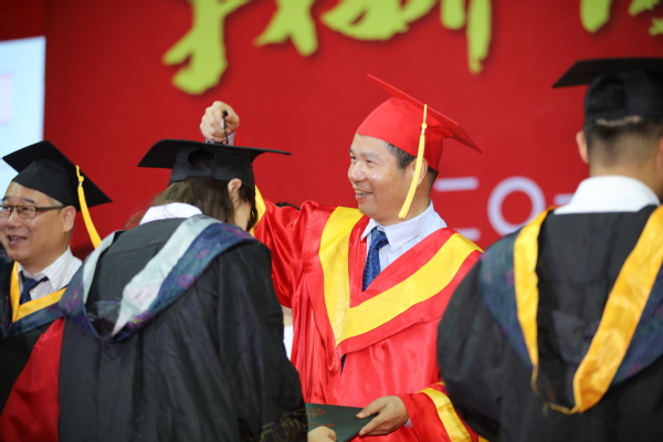 随后,进行了隆重的学位授予仪式,校领导为毕业生代表拨正流苏、颁发学位证书。在校歌声中,2019届本科生毕业典礼暨学位授予仪式圆满结束。