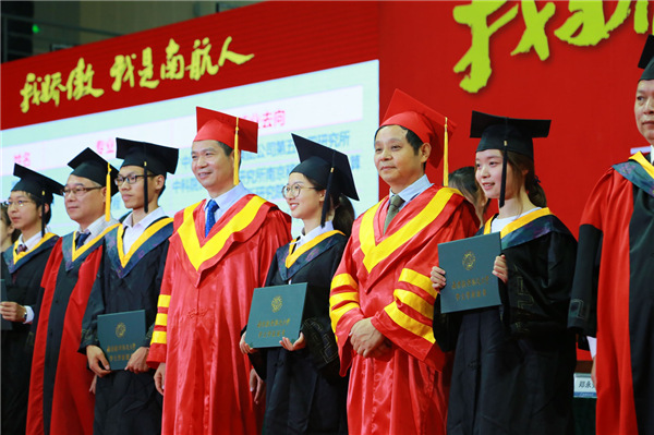 在毕业典礼上,ac米兰官网中文网站校长聂宏寄语2019届毕业生。他祝贺毕业生们即将伴着建国70周年的乐章顺利毕业,并用“忘不了” “ac米兰造” “真好”这三个关键词与毕业生们共同回忆这不同寻常的四年大学生活。他希望全体毕业生能够提升责任意识、锤炼创新精神、开拓国际视野、培育人文情怀,成为德才兼备、引领各行各业发展的“社会栋梁”和“工程英才”。