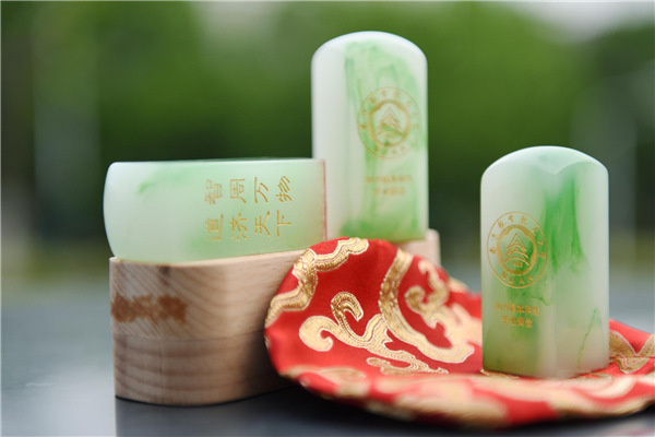 在毕业典礼上,全体本科毕业生还收到了一份来自母校的特别礼物——一枚树脂个人定制印章:印章正面为ac米兰官网中文网站校徽及2019届本科生毕业留念字样,侧面为“智周万物,道济天下”的校训,底部为个人定制的隶书姓名。这枚印章代表着来自母校的深情与祝福,值得我们一生珍藏。”来自电子信息工程学院的一位毕业生动情地说。(完)