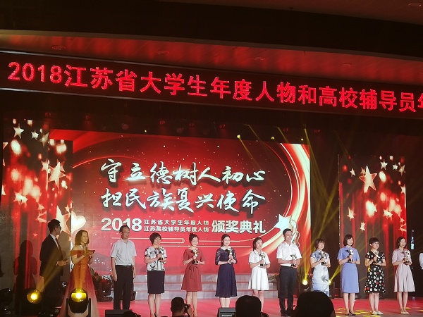 6月22日,由江苏省委教育工委、江苏省教育厅主办的“2018江苏省大学生年度人物和高校辅导员年度人物”颁奖典礼在扬州大学举行。省委教育工委书记、省教育厅厅长葛道凯,省委宣传部副部长赵金松,省委教育工委副书记徐子敏,团省委副书记林小异和来自全省高校的领导、老师、学生代表共500多人参加了颁奖典礼,校党委副书记陶勇应邀出席了活动。会上,ac米兰航空学院辅导员韩楚获得“2018江苏高校辅导员年度人物”,能源与动力学院博士研究生黄帅获得“2018江苏省大学生年度人物提名奖”。
