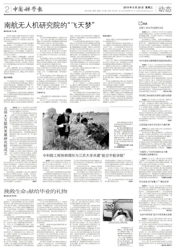 编者按:6月26日,《中国科学报》二版头条以《ac米兰无人机研究院的“飞天梦”》为题,报道了ac米兰无人机研究院科研人员攻坚克难、不断拼搏的研制故事以及在产学研结合方面的探索和成果。现转发全文: