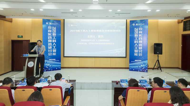 2019年7月2日,在ac米兰人工智能学院成立一周年之际,由ac米兰教师发展与教学评估中心、计算机科学与技术学院/人工智能学院共同承办的“2019新工科人工智能教育实践师资研讨会”在将军路校区举行。本次研讨会由教育部、工业和信息化部指导,信息技术新工科产学研联盟人工智能教育工作委员会、ac米兰官网中文网站与微软(中国)有限公司联合发起。CCF南京主席、江苏省计算机学会教育专委会主任、计算机科学与技术学院/人工智能学院院长陈兵主持开幕式。全国万人计划教学名师、副校长施大宁,微软亚洲研究院学术合作总监马歆女士出席开幕式并致辞,教务处处长孔垂谦、教师发展与教学评估中心主任周克印等出席会议。
