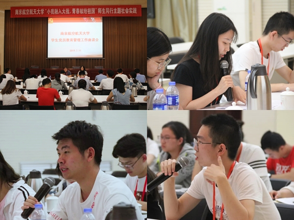 在学生党员教育管理工作座谈会上,与会师生代表对标新时代“从严治党”要求,就“三会一课”常态化开展、党员骨干先锋模范作用发挥、“百岗奉献”平台建设等角度,指出了所在支部党员教育管理中存在的问题不足,并就改进工作提出了意见建议。