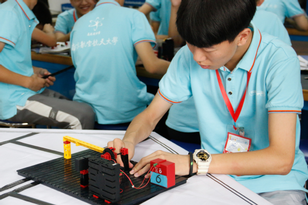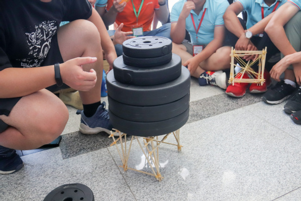 动力龙舟、让铅笔飞、报纸承重、筷子搭桥四个经典科技作品实践赛项目,对于大多数是第一次自己动手设计作品的营员来说充满挑战,不同地区的营员组队竞赛的方式让带队老师和学生热情高涨。累计近10小时的时间,营员们创作了近50件科技作品。