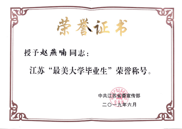 近日,在由江苏省委宣传部主办的江苏“最美大学毕业生”评选中,ac米兰研工部、团委、就业创业指导服务中心联合推荐的、自动化学院2018届硕士毕业生赵燕喃,获评江苏“最美大学毕业生”荣誉称号,此次评选全省范围内仅4人当选,江苏电视台、新华日报等省内主流媒体对赵燕喃进行了集中宣传。