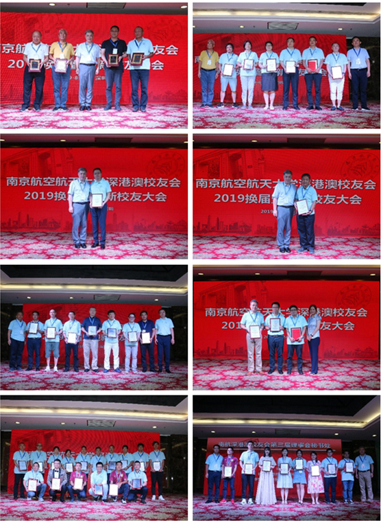 熊克、闾浩、张钟勤为深港澳校友会第三届理事会成员颁发聘书。