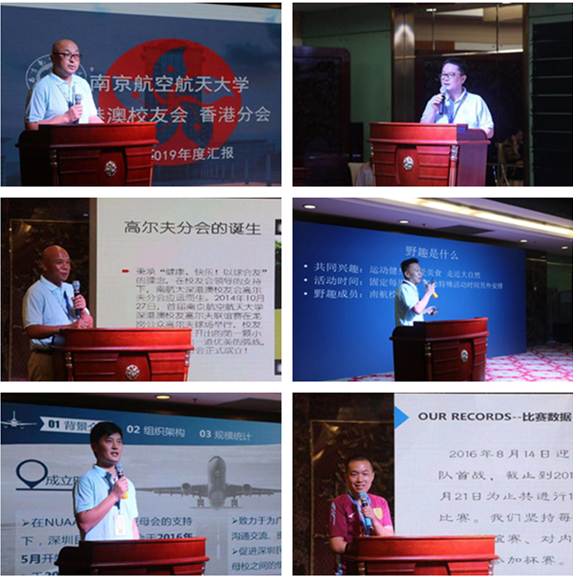 香港分会、龙岗分会、野趣分会、高尔夫分会、民航分会和足球队代表分别汇报了第二届理事会以来的工作成果及未来规划。各分会活动精彩纷呈,在加强互动、增进情谊、促进合作等方面,为校友之间、校友与母校之间搭建沟通交流的桥梁。