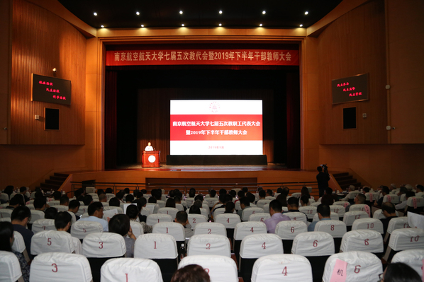 校长聂宏同志代表学校作了题为《不忘初心,牢记使命,砥砺奋斗,以优异成绩献礼新中国七十华诞》的工作报告。报告全面回顾和总结了学校2019年上半年工作落实情况,对2019年下半年各项重点工作进行部署和解读。他指出,上半年,全体师生员工紧紧围绕学校年度工作目标和部署,高质量完成各项工作任务,取得了阶段性成绩。下半年,全校上下要按照校十六次党代会决策部署和2019年工作要点,牢牢把握立德树人根本任务,全面推进“双一流”建设,不忘初心,牢记使命,加快建设航空航天民航特色鲜明的世界一流大学,以优异成绩献礼新中国七十华诞。他强调,要重点做好四个方面的工作:一是以主题教育为引领,全面夯实共同奋斗的思想基础;二是以人才培养为根本,全面落实“三全育人”工作体系;三是以“双一流”建设为龙头,全面增强办学综合实力;四是以优化资源配置为抓手,全面提升可持续发展能力。