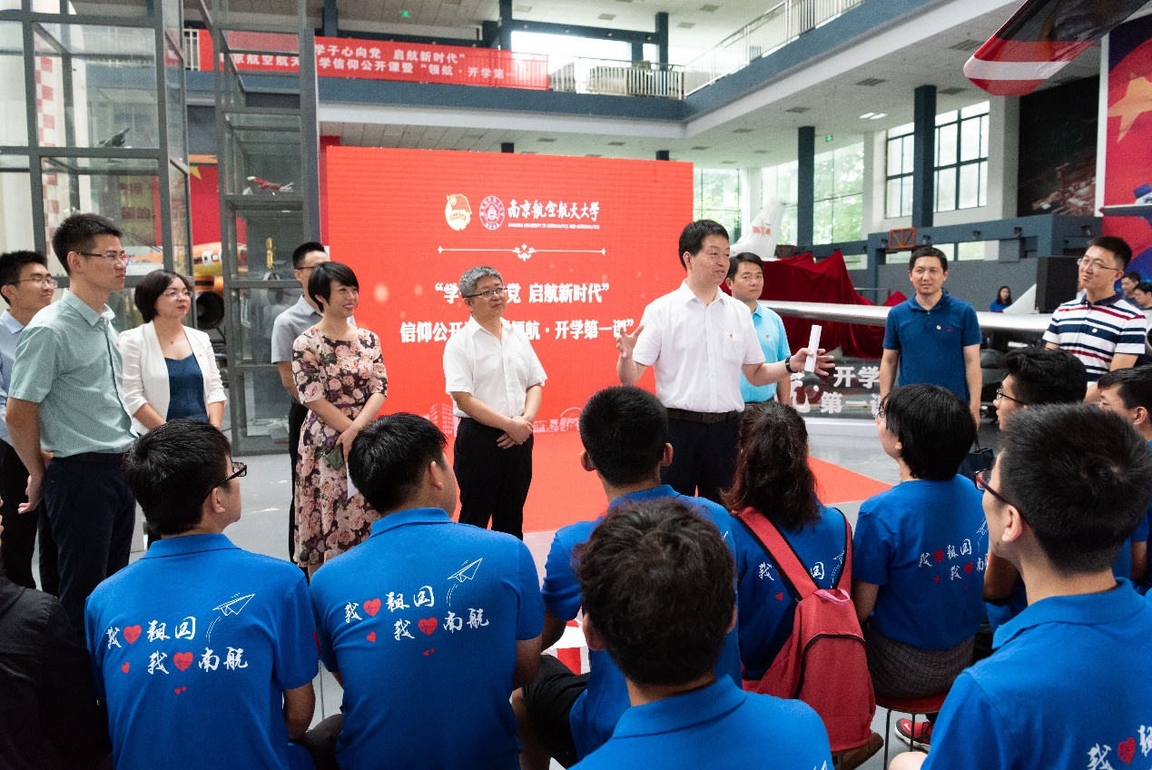 9月10日上午,“学子心向党•启航新时代”ac米兰官网中文网站信仰公开课暨“领航•开学第一课”在ac米兰明故宫校区航空航天馆举行。共青团江苏省委副书记林小异,ac米兰党委常委、组织部部长李遥,团省委高校部副部长柏茂林出席活动,校团委全体工作人员,各学院团委书记及本硕两个基层团支部团员代表到场听讲。