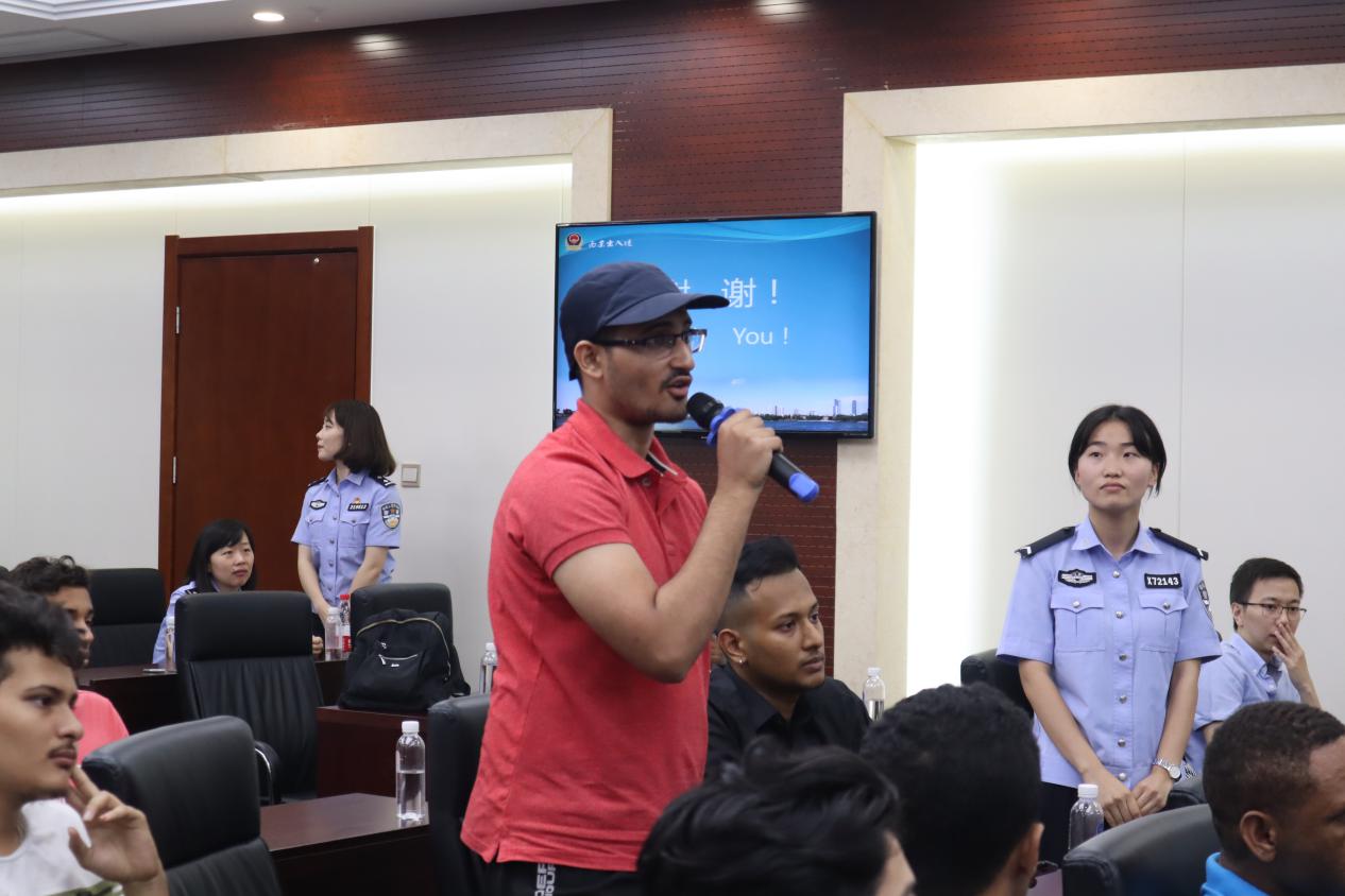 随后,市公安局出入境管理支队外国人签证大队民警陈曦就签证、延签、居留许可及来华人员注意事项和安全问题等,对ac米兰留学生展开了课程第一讲。在互动环节,陈曦针对签证类型等问题向ac米兰留学生进行了现场提问,留学生们踊跃回答,现场气氛热烈。