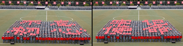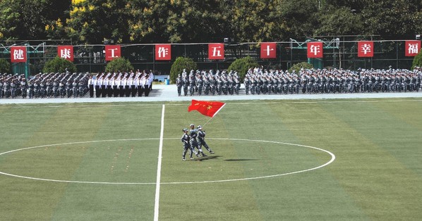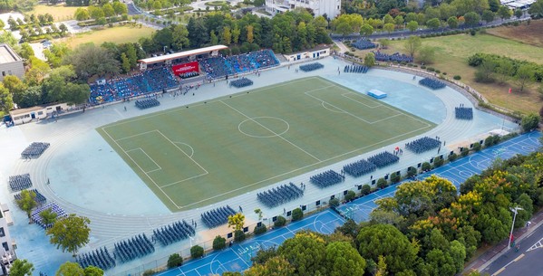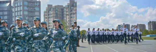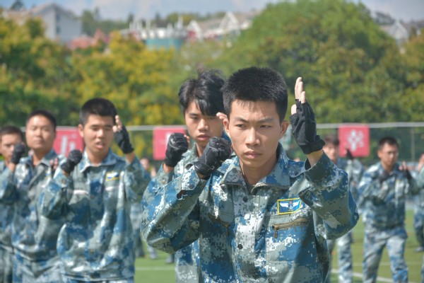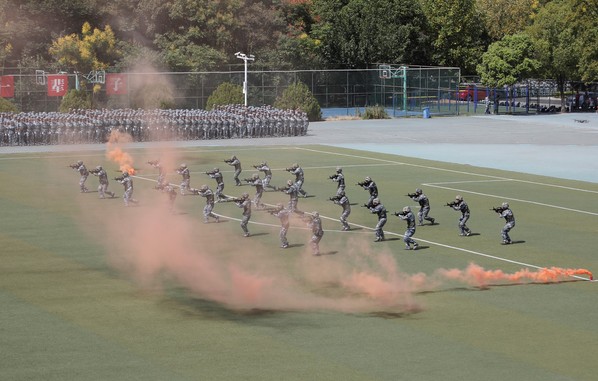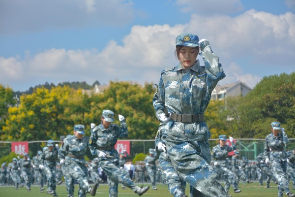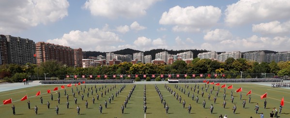 上午十时,流云如画,将军路和天目湖两个校区5000余名新生集结在西田径场,他们军容严整,目光坚毅,接受全校师生的检阅。