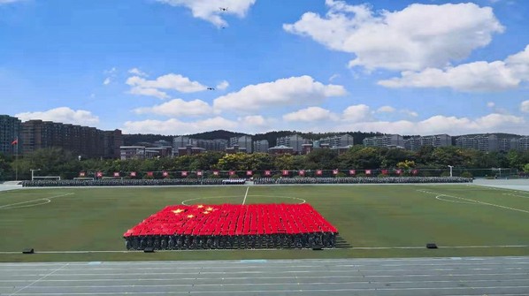 来自天目湖校区的表演方阵用“中国红”描绘了祖国70载栉风沐雨,献礼新中国成立七十周年。 “不忘初心,牢记使命,我爱中国,我爱ac米兰”,同学们真诚呐喊,庄严承诺,相信在未来,他们必将谨记誓言,勇往直前。