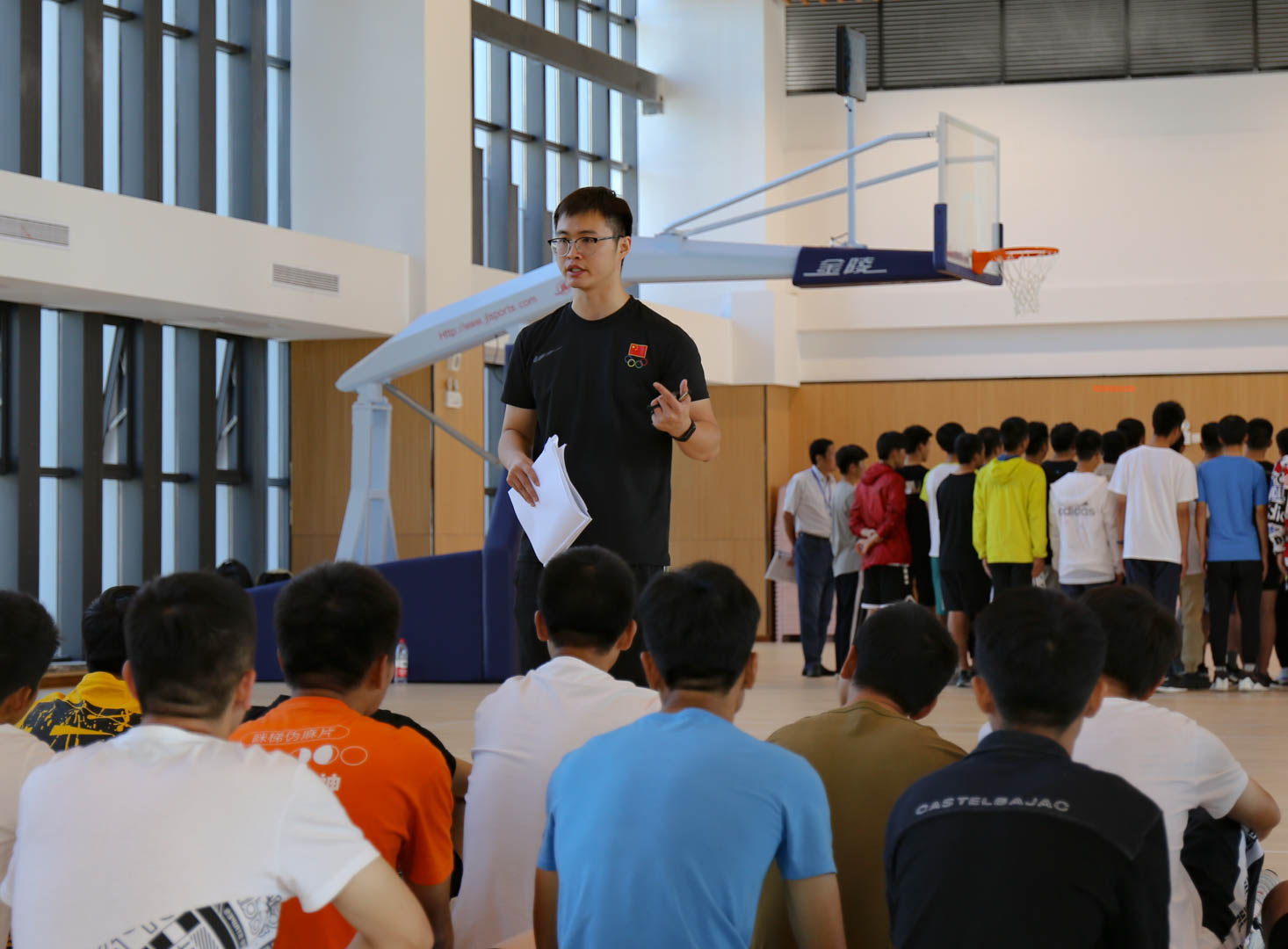 9月23日上午8时30分,天目湖校区新生第一节课在校区巡天楼和风雨操场同时开讲。这是天目湖校区正式启用以来的首次授课,校长助理黄炳辉来到课堂,看望了上课的老师,旁听了第一天的课堂教学。