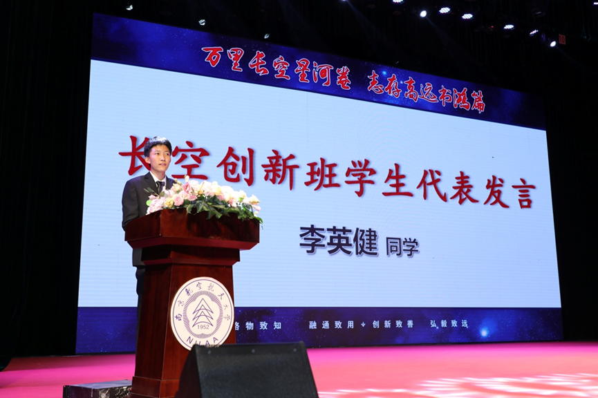 在开展航空航天大类培养改革的同时,长空学院也扎实推进拔尖创新人才培养模式改革,“长空创新班”由此应运而生。826名学生申请,历时两月,多轮选拔,无数个“长空十二时辰”,60名ac米兰新生以优秀的综合素质成功入选,成为首届“长空创新班”学生。李英健同学代表长空创新班首届学生发表感言。