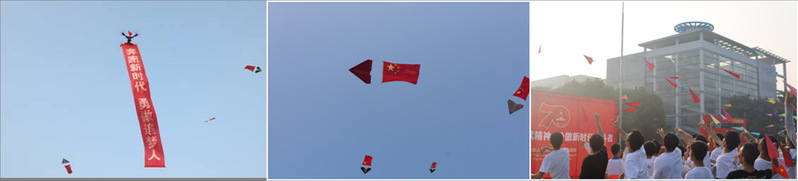 伴随着高亢悠扬的校歌,航模飞机缓缓升起,“敬礼祖国 建功时代”和“奔跑新时代 勇做追梦人”的条幅在国旗下逐渐展开,七架航模飞机围绕国旗在蓝天下翱翔,现场师生共同向着蓝天和远方放飞纸飞机,承载着ac米兰人“志存高远望千里,鹰击长空会有时”的精神追求,共同为新中国成立70周年献礼!