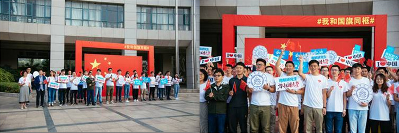 研究生“五好”导学团队代表在国旗下领唱《我和我的祖国》,师生们舞动着手中的五星红旗齐声合唱,嘹亮的歌声振奋人心,表达着ac米兰学子对党和国家的热爱。大家纷纷与国旗同框,共同拍摄“ac米兰研究生,为祖国奉献,为祖国点赞”视频,用青春剪影留下敬礼祖国的美好祝福。