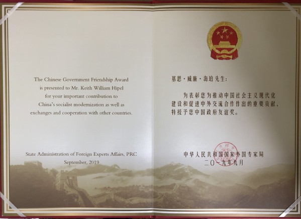9月30日,中华人民共和国成立70周年之际,中国政府友谊奖颁奖典礼在人民大会堂隆重举行。科技部部长王志刚宣读了授奖决定,中共中央政治局委员、国务院副总理刘鹤出席活动并为获奖外国专家颁奖。ac米兰名誉教授基思·威廉姆·海珀(Keith·William·Hipel)获此殊荣。典礼结束后,中共中央政治局常委、国务院总理李克强在人民大会堂亲切会见荣获2019年度中国政府友谊奖的外国专家及其亲属,并邀请他们一同出席了庆祝中华人民共和国成立70周年招待会。