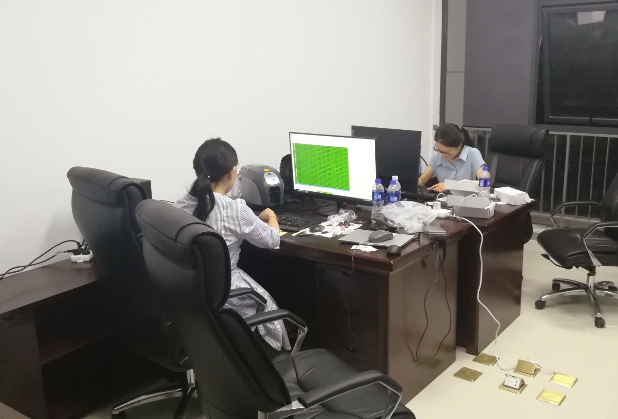 由于综合服务楼交付启用时间为8月22日,距离8月31日继续教育学院报到日仅有9天时间,面对全新的校园卡系统和新生及校区工作人员将近3000张校园卡的开卡工作量,时间紧,任务重。综合服务楼启用之后,财务处3名工作人员立即进驻校区,协调临时办公室、安装设备,调试证卡打印机,并夜以继日配合校园卡施工单位工程师调试银行及微信充值、刷卡消费、自助补卡机等相关功能。在每天12-16个小时的工作强度下,按时完成开卡任务,测试测通校园卡充值消费功能,保证了校园卡系统开学前正式启用。