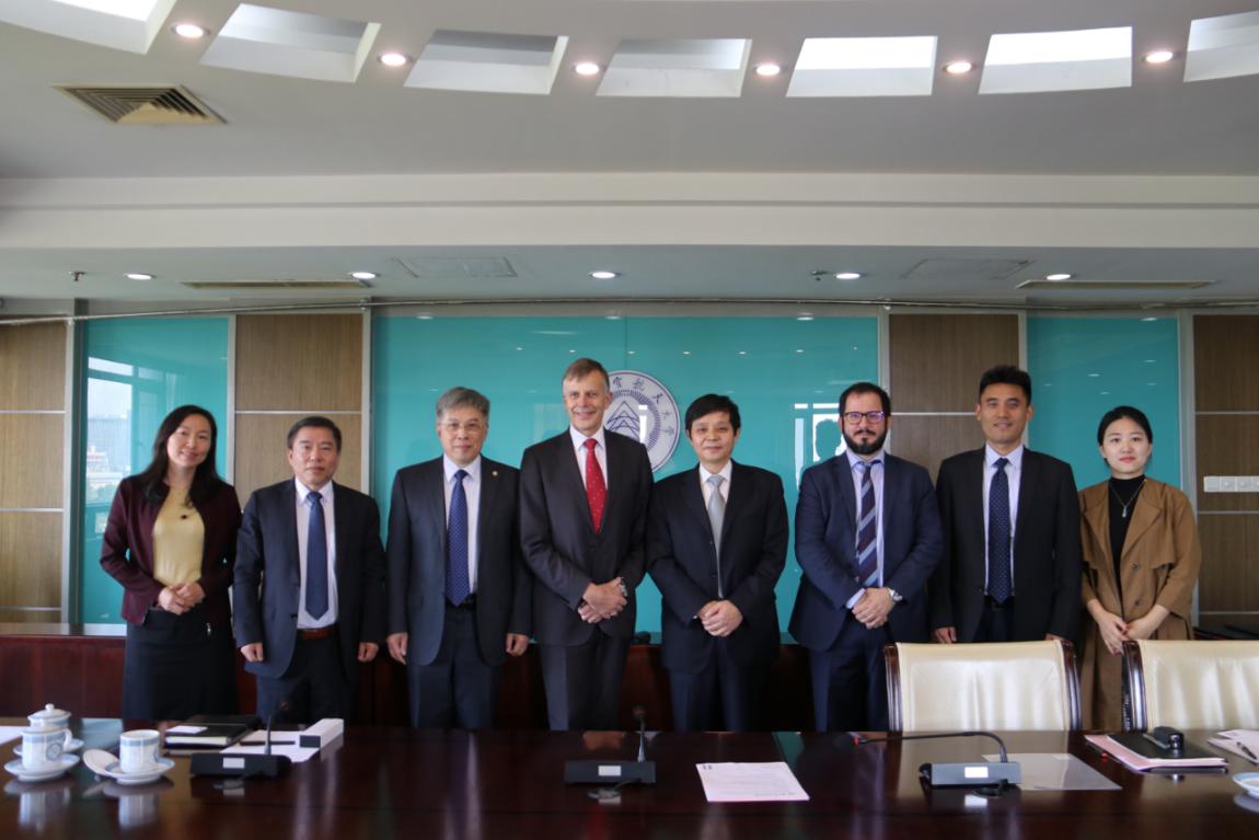10月19日上午,英国克兰菲尔德大学校长Peter Gregson一行来访ac米兰,校长聂宏亲切会见了外宾。校长助理熊克,国际合作处、机电学院相关负责同志参加了会谈。会谈由校长助理熊克主持。