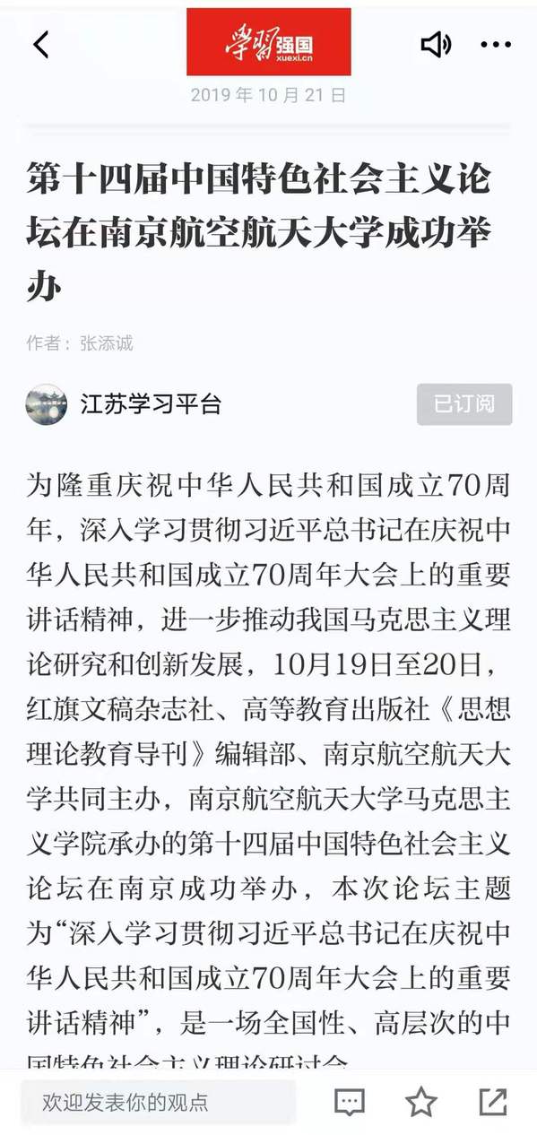 10月21日,“学习强国”平台报道了由红旗文稿杂志社、高等教育出版社《思想理论教育导刊》编辑部、ac米兰官网中文网站共同主办的第十四届中国特色社会主义论坛。现转发全文: