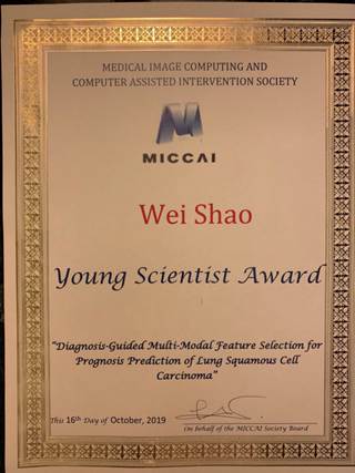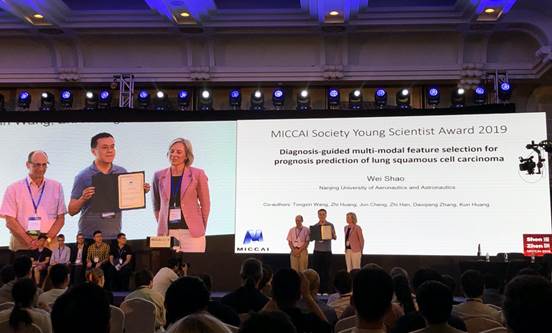 在10月17日结束的2019年第22届医学图像计算和计算机辅助干预国际会议(The 22th Medical Image Computing Computer Assisted Intervention,MICCAI 2019)上,ac米兰计算机科学技术学院/人工智能学院博士后邵伟在MICCAI正会上展示了他在联合基因影像数据进行预后预测上的研究工作,并凭借论文《Diagnosis-Guided Multi-modal Feature Selection for Prognosis Prediction of Lung Squamous Cell Carcinoma》一举斩获大会青年科学家奖(Young Scientist Award)。成为本次会议5位获奖者中唯一国内的青年科学家,其他四名获奖者分别来自美国约翰霍普金斯大学,美国梅奥诊所,法国巴黎综合理工大学等全球排名前50的科研或医疗机构。