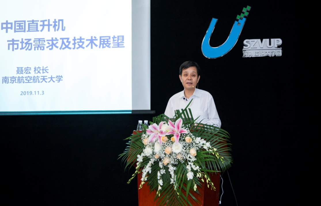 11月3日上午,深圳虚拟大学园名校名师公益课堂在深圳南山科技园产业化综合楼举行,校长聂宏应邀作了题为《中国直升机发展回顾、市场需求及技术展望》的主题报告,深圳市高校教育专家、通用航空科技工作者、ac米兰深港澳校友会校友以及深圳大中学生代表200余人聆听报告。
