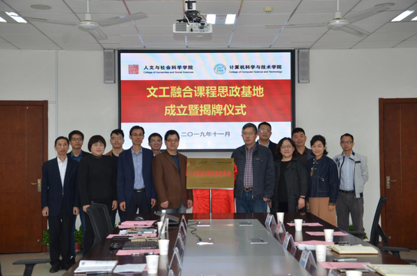 为了切实推进”不忘初心、牢记使命“主题教育扎实开展、取得成效,认真落实两学院理论中心组联合学习研讨成果,紧紧围绕立德树人根本任务,发挥专业优势,推进学科交叉融合、创新课程思政。11月7日,人文与社会科学学院、计算机科学与技术学院/人工智能学院联合举行”文工融合课程思政基地“成立暨揭牌仪式。两学院领导班子成员、教师代表参加仪式。人文学院党委书记刘虎、计算机学院党委书记刘健荣共同主持仪式。