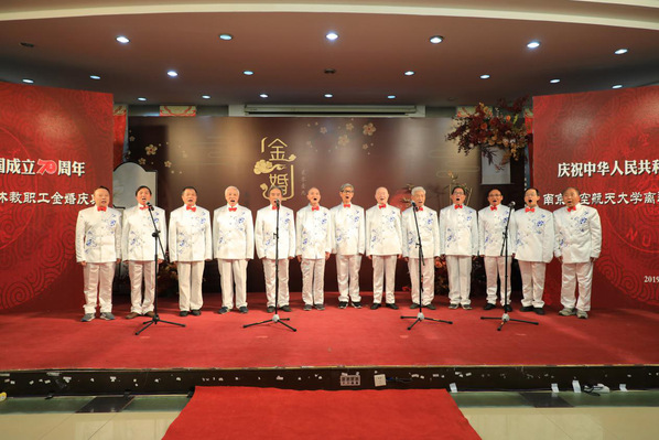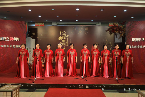 接下来,杭育新为金婚夫妇献花,原单位领导为金婚夫妇颁发纪念品。夕阳红艺术团舞蹈队、合唱队分别为金婚夫妇们表演了精彩的节目,把金婚庆典气氛推向高潮,庆典在喜庆热烈、温馨祥和的气氛中圆满落下帷幕。