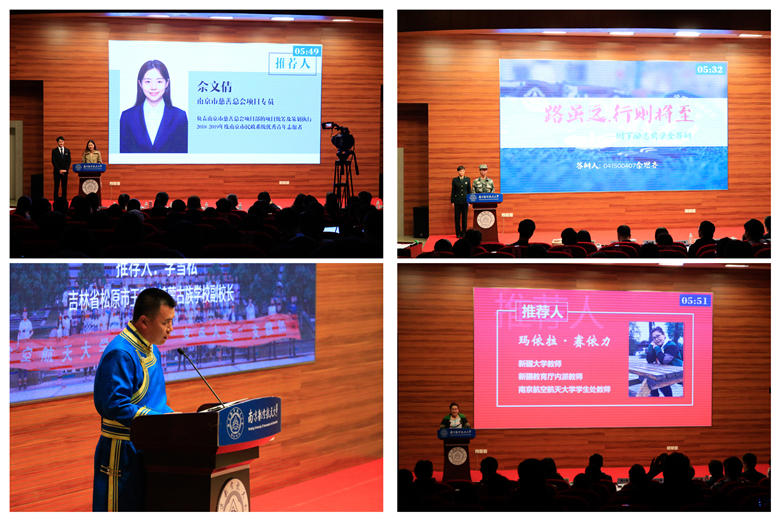 公开答辩会上,每名候选人需在合计6分钟的时间里,完成推荐人推荐和个人陈述。推荐人涵盖了知名教授、任课教师、班主任、科创指导教师、企业代表、政府工作人员、普通同学、志愿活动受助单位等多个类别。个人陈述部分,候选人从多个方面着重对过去一年的综合表现进行了集中展示,他们以精彩绝伦的现场表现实力圈粉,现场不时爆发出阵阵掌声。