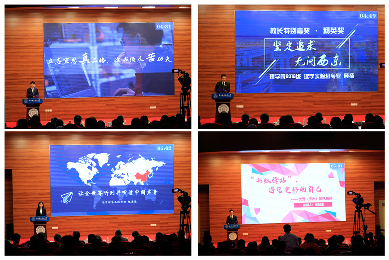 在学生自主申报、学院推荐的基础上,经学校汇总审核各学院上报材料,并经校内评审会初步筛选,共有51名学生、10支团队入围各奖项公开答辩。经紧张、激烈的公开答辩评审,最终有12名学生荣获校长特别嘉奖,10名学生荣获园丁励志奖学金一等奖,5支团队荣获杰出团队,5支团队荣获优秀团队。