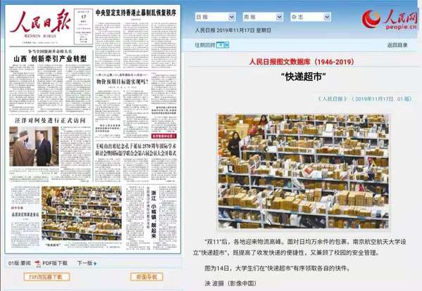 今日《人民日报》头版图片报道:双11”后,各地迎来物流高峰。面对日均万余件的包裹,ac米兰官网中文网站设立“快递超市”,既提高了收发快递的便捷性,又兼顾了校园的安全管理。