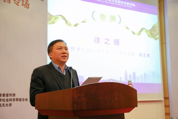 徐之顺在致辞中指出,新时代呼唤哲学社会科学青年学者承担新使命。青年是国家的希望、民族的未来,把青年一代培养造就成德智体美劳全面发展的社会主义建设者和接班人,是事关党和国家前途命运的重大战略任务。党的十八大以来,以习近平同志为核心的党中央高度重视青年工作,多次对青年工作作出重要论述,为当代青年成长成才指明了方向。徐之顺表示,江苏既是人才大省,又是青年人才辈出的沃土。青年学者思想活跃、精力充沛、创新意识强,是教学科研的生力军,引领着江苏学术的未来方向。近些年来,在省委省政府及有关部门的关心支持下,我省青年社科人才成长迅速,人才储备丰厚,社科事业后继有人。青年专场的设置为青年学者搭建了一个崭露头角、激扬文字、广交师友、获得关注和认可的平台。他希望参会的青年学者珍惜此次机会,深入交流研讨,用更多有深度、有价值的理论成果,为全省高质量发展和“强富美高”新江苏建设贡献智慧和力量。
