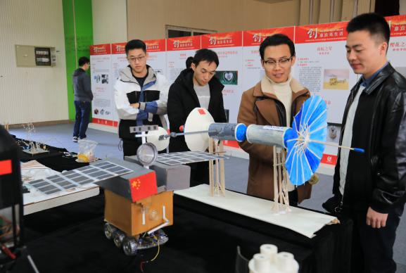 开幕式之前,参会领导和嘉宾参观了创意创新创业作品展区。此次三创节展览共分为场内场外两个展区,包括百余件作品和项目。场外展区展出了近两年来ac米兰学子在“挑战杯”、“创青春”、“互联网+”等国家级重大赛事中获奖的作品,场内展区则集中展出了ac米兰大学生自主创作的Transwing垂直起降飞行器、新型共轴双旋翼直升机设计与控制、手指运动康复训练机器人等创新创意作品。