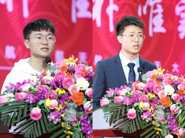 在“责任”篇章,园丁励志一等奖获得者、电子信息工程学院余思齐首先讲述了她投身军队磨炼意志,重回学校励志奋进,从“优秀新兵”、“优秀义务兵”到“励志榜样”的求学故事。“标兵宿舍”获奖代表、理学院的沈俊则分享了他在舍友帮助下,从“落后典型”转变为“先进榜样”的逆袭经历,互帮互助、责任担当,“宝藏宿舍”的故事还在继续。研究生“五好导学团队”代表、材料科学与技术学院的M-best化学储能团队则用问答的形式,生动展现了团队在德育建设、科研实践、氛围营造方面倾注的心血、取得的成果,形成的人才培养经验值得借鉴。