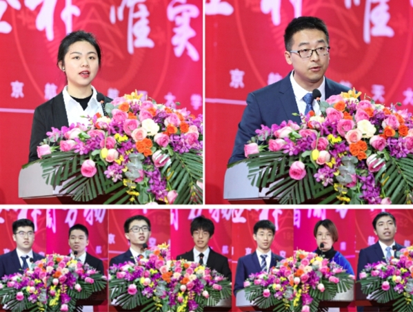 杭育新、施大宁、陶勇、姜斌分别为学生代表颁发了国家奖学金,中国政府奖学金,全国学科/学会优秀博士学位论文奖、江苏省优秀博士、硕士学位论文奖。