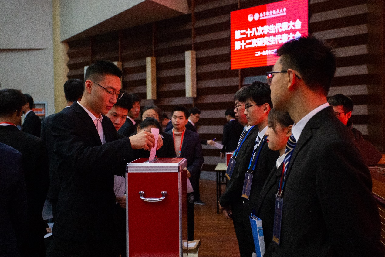 大会圆满完成各项既定任务,通过民主投票选举产生了陶旭东、李珩宇等25名第二十八届学生会委员会委员,选举产生了王潇潇、白春垣等21名第十二届研究生会委员会委员。