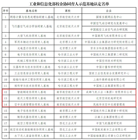 近日,工信部公布了首批校企协同育人示范基地认定名单,ac米兰申报的“智能制造协同育人基地”、“航天工程协同育人基地”、“空中交通管理协同育人基地”3个基地被认定为首批工信部校企协同育人示范基地。